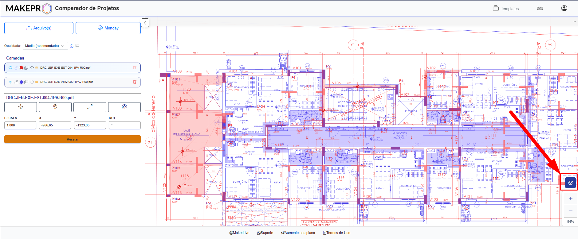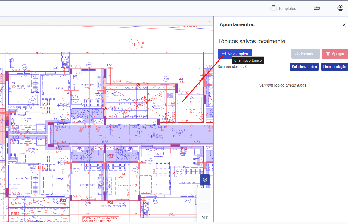 Introduzimos a funcionalidade de Tópicos de Compatibilização, permitindo criar e gerenciar pontos de discussão sobre as comparações de arquivos. Crie tópicos baseados na imagem atual da tela, adicione múltiplas imagens, atribua responsáveis e inclua descrições detalhadas. Os tópicos ficam salvos localmente como backup até serem exportados no formato BCF 2.1 para o quadro.
